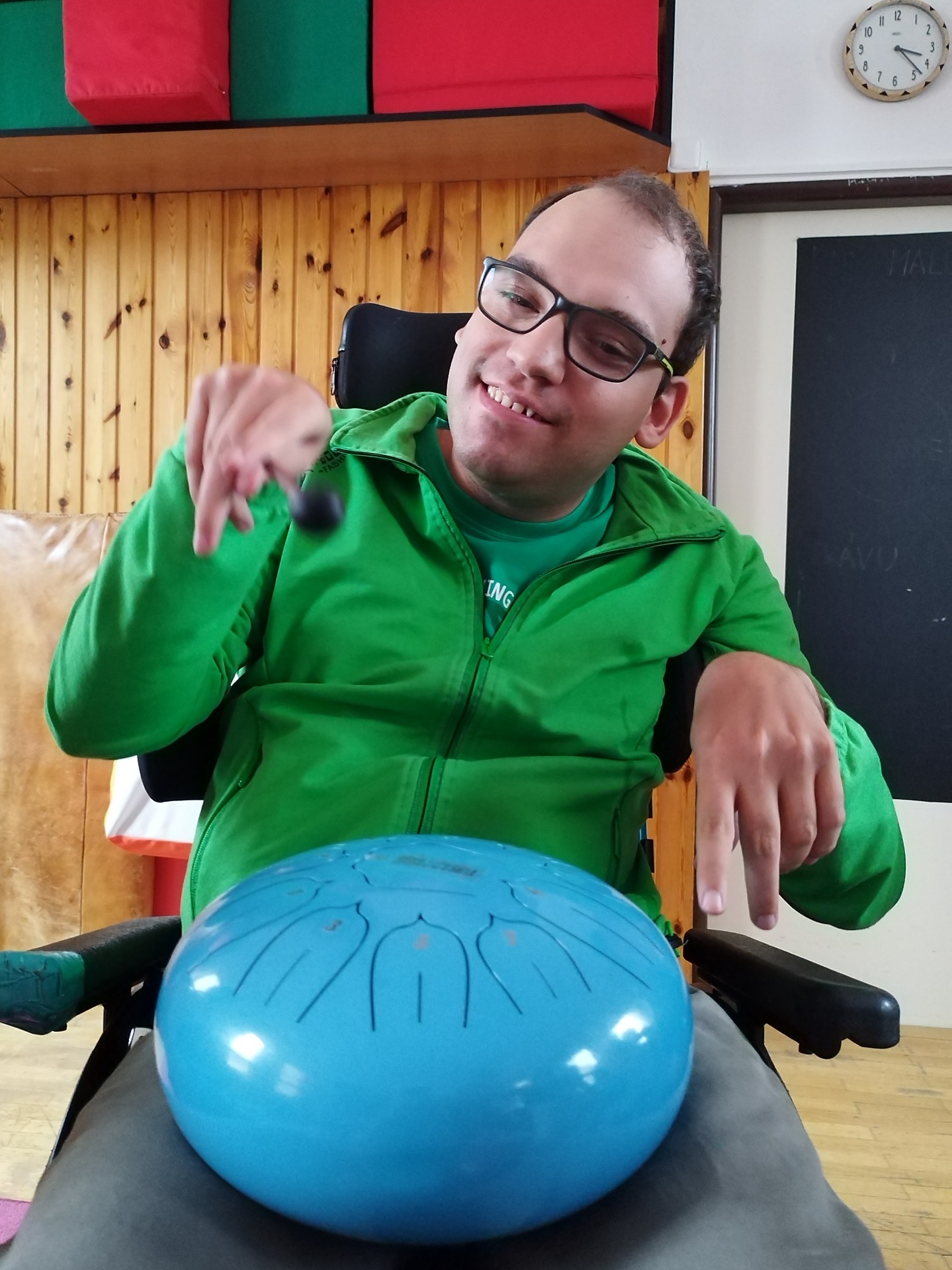 Přátelé z Denniho stacionáře k nám docházejí 1x měsíčně. Smyslem je jejich aktivizace i po skončení školní docházky. Tématem byla podzimní sklizeň na zahrádce, vše propojené písničkami a nástroji.